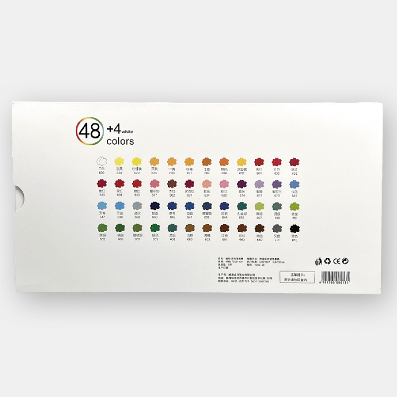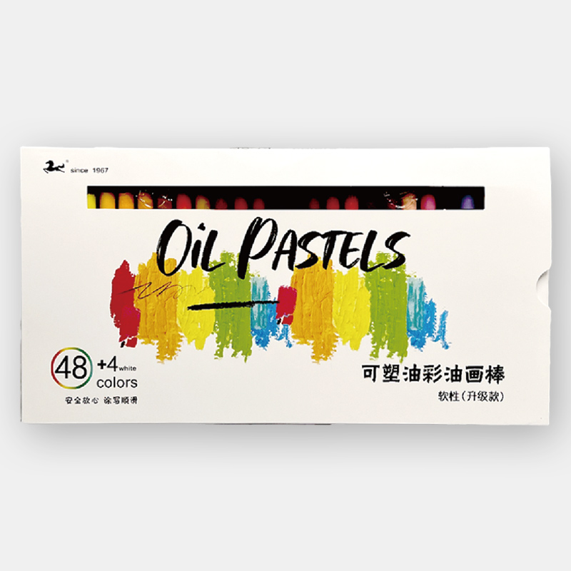 -Standard oil pastels in 48 colors plus 4 extra white colors.-48 pastels in a box with plastic tray and transparent protective cover.